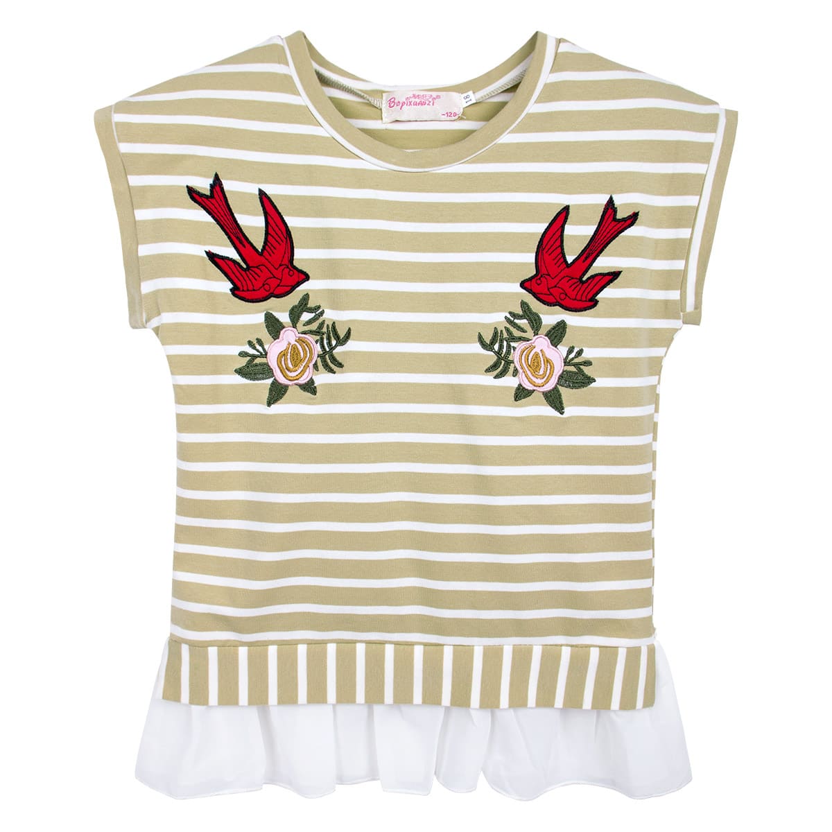 Модель с ярким оригинальным принтом, нижнюю часть украшает кокетливая оборка. Такая футболка легко комбинируется с джинсами, шортами, различными юбками. Размер 128 (рост 128 см): длина изделия 43 см, ширина 31 см. Размер 134 (рост 134 см): длина изделия 45 см, ширина 33 см. Размер 140 (рост 140 см): длина изделия 47 см, ширина 35 см. Размер 146 (рост 146 см): длина изделия 49 см, ширина 37 см.