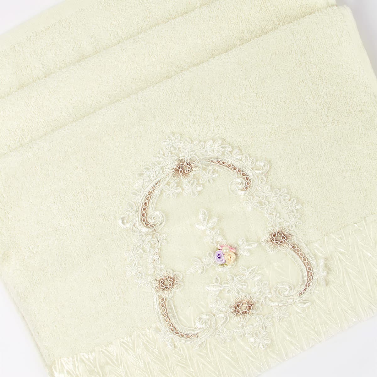 Изысканное полотенце, декорированное нежным кружевом и бусинами. Мягкая, пушистая махра отлично впитывает влагу, быстро сохнет, и надолго сохраняет свой первоначальный вид. Такое полотенце подарит чувство комфорта при использовании, и добавит нотку роскоши в интерьер вашей ванной. Размер 30*65 см Плотность 400 г/м2 Идеальное решение для вашей ванной комнаты.