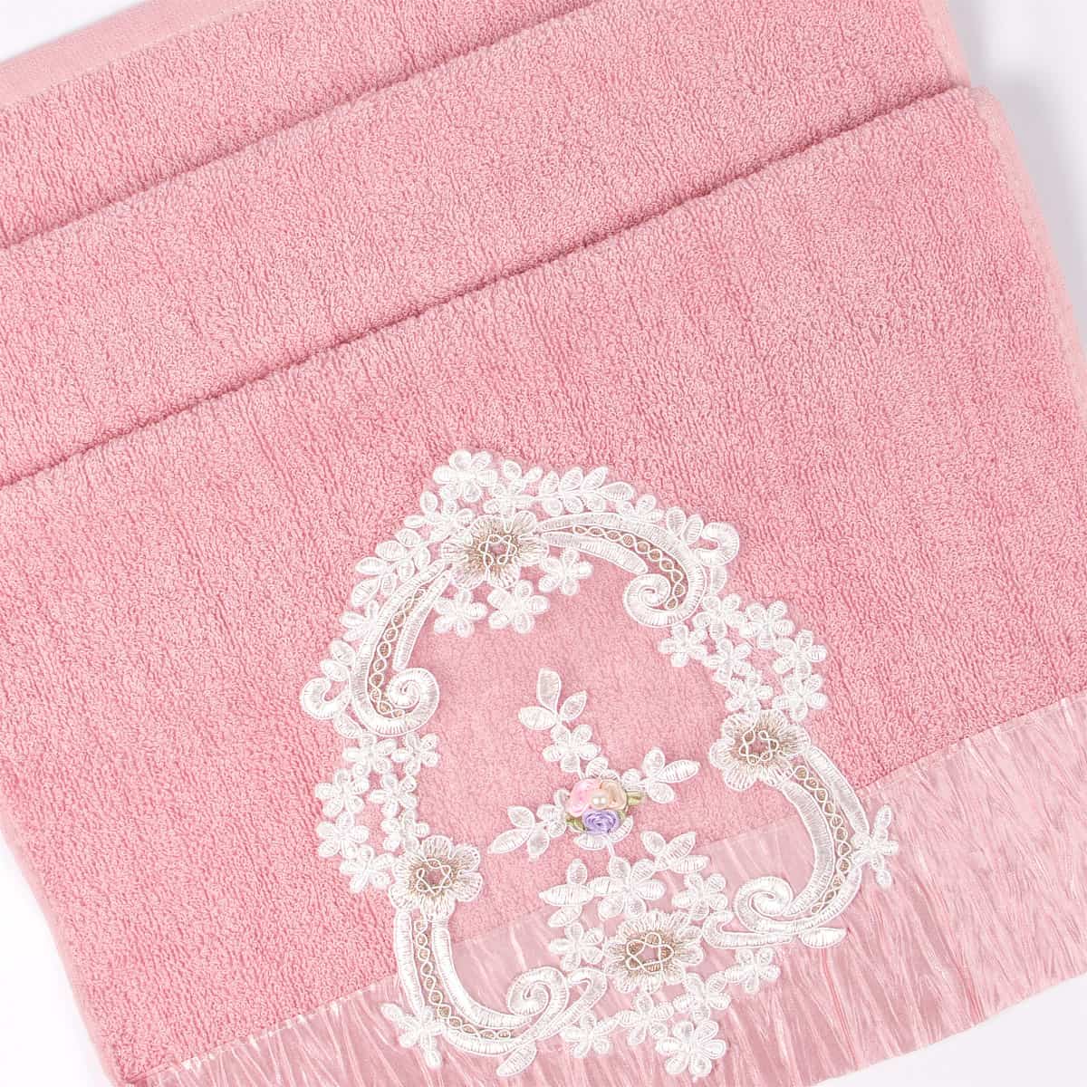 Изысканное полотенце, декорированное атласной полосой и нежным кружевом. Мягкая, пушистая махра отлично впитывает влагу, быстро сохнет, и надолго сохраняет свой первоначальный вид. Такое полотенце создаст неповторимый интерьер в вашей ванной, и подарит приятные эмоции после принятия расслабляющего душа. Размер 45*90 см Плотность 400 г/м2 Идеальное решение для вашей ванной комнаты.