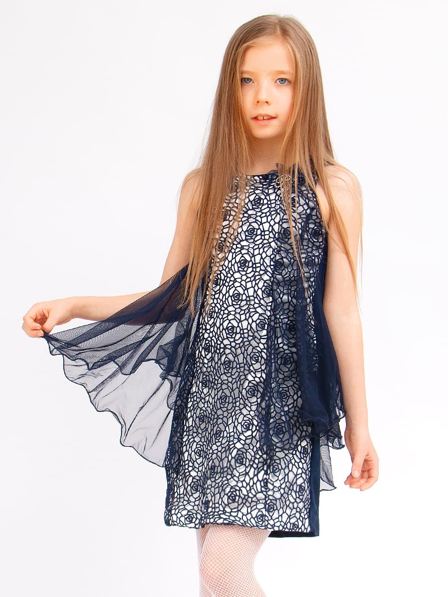 Элегантное платье, декорировано перфорацией в виде роз Оригинальный шлейф сзади Подойдет на любой праздник. Полиэстер 100% Рост указан приблизительно, выбирайте размер в соответствии с замерами Размер 128-9 (рост 128) Длина изделия 67 см, ширина (полуобхват груди) 30 см.