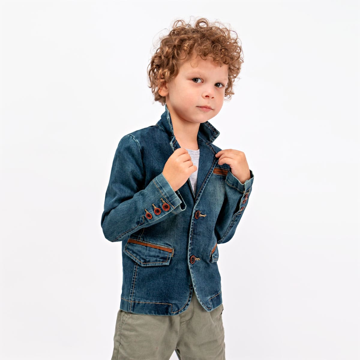 Джинсовый однобортный приталенный пиджак с классическими лацканами. Имитация карманов и эффект вываренности придают модели более повседневный стиль. Универсальный верх для весенне-летнего сезона. Отлично сочетается как с будничными футболками, так и с праздничными рубашками. Размер 104-3 (рост 104 см) длина изделия 42 см, обхват груди 66 см, длина рукава 40 см. Размер 110-4 (рост 110 см) длина изделия 43 см, обхват груди 66 см, длина рукава 41 см. Размер 5 (рост 116 см) длина изделия 44 см, обхват груди 66 см, длина рукава 42 см. Размер 6 (рост 122 см) длина изделия 46 см, обхват груди 70 см, длина рукава 44 см. Размер 7 (рост 128 см) длина изделия 47 см, обхват груди 72 см, длина рукава 46 см. Размер 8 (рост 134 см) длина изделия 48 см, обхват груди 74 см, длина рукава 47 см.