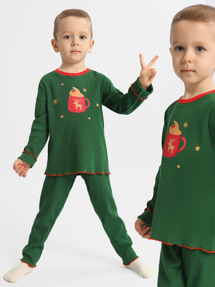 Праздничный комплект для комфортного сна вашего ребенка, состоящий из лонгслива и брюк, с ярким новогодним принтом. Размер 110 (рост 104-110 см): длина кофты 42 см, ОГ 66 см, длина рукава 38 см; длина брюк по бок. шву 62 см, по внутр. 44 см, ОТ 50-58 см, ОБ 68 см. Размер 122 (рост 116-122 см): длина кофты 46 см, ОГ 70 см, длина рукава 42 см; длина брюк по бок.шву 68 см, по внутр. 48 см, ОТ 52-64 см, ОБ 74 см. Размер 134 (рост 128-134 см): длина кофты 50 см, ОГ 76 см, длина рукава 46 см; длина брюк по бок.шву 74 см, по внутр. 52 см, ОТ 56-70 см, ОБ 80 см. Размер 146 (рост 140-146 см): длина кофты 54 см, ОГ 82 см, длина рукава 50 см; длина брюк по бок.шву 82 см, по внутр. 60 см, ОТ 60-72 см, ОБ 82 см. Размер 158 (рост 152-158 см): длина кофты 58 см, ОГ 84 см, длина рукава 54 см; длина брюк по бок.шву 92 см, по внутр. 70 см, ОТ 62-74 см, ОБ 84 см. Размер 164 (рост 158-164 см): длина кофты 60 см, ОГ 86 см, длина рукава 58 см; длина брюк по бок.шву 96 см, по внутр. 74 см, ОТ 64-76 см, ОБ 88 см.