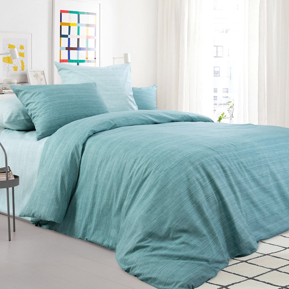 Бязь – прочная и износостойкая ткань. Она слегка шероховата за счет утолщения нитей по всей длине, но приятна на ощупь. Хлопок сохраняет тепло, впитывает влагу, пропускает воздух, обладает всеми необходимыми характеристиками для обеспечения здорового сна. Ткань можно стирать в стиральной машине при любом режиме. Она не садится, не теряет форму, отлично гладится. Плотность 120 гр/м2. Размер 1,5 спальный (простынь 145*214 см, пододеяльник-прорезь 143*215 см, наволочка-клапан 70*70 см)