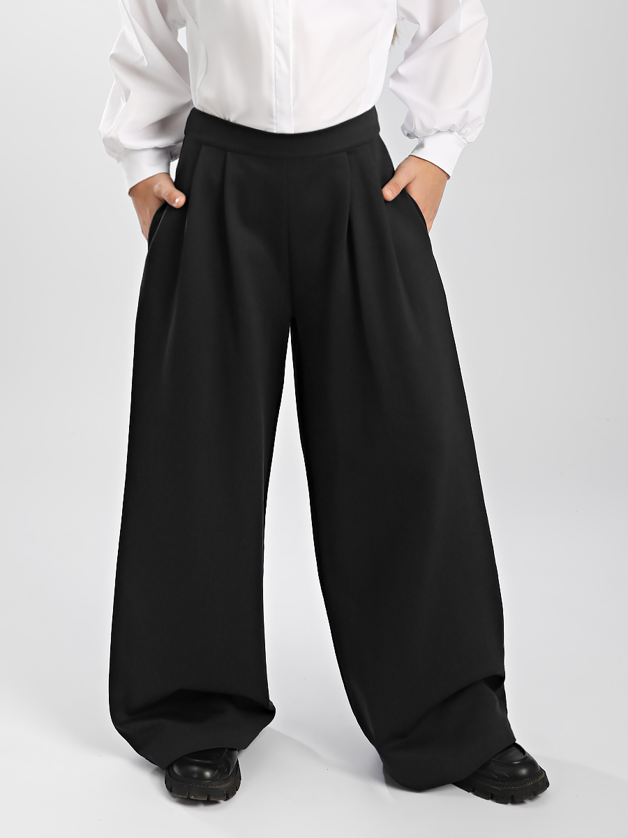 Брюки палаццо для девочки Соль&Перец, с карманами. Модель имеет расширяющийся от бедра силуэт, что визуально вытягивает фигуру. Брюки застёгиваются на потайную молнию сбоку, сзади в пояс вшита резинка. Брюки выполнены из износостойкой костюмной ткани «Босс» которая долго сохраняет форму и привлекательный внешний вид. Размер 146 (рост 146-152 см) длина по внешнему шву 92 см, по внутреннему 66 см, ОТ 62-68 см, ОБ 98 см. Размер 152 (рост 152-158 см) длина по внешнему шву 98 см, по внутреннему 70 см, ОТ 68-74 см, ОБ 100 см. Размер 158 (рост 158-164 см) длина по внешнему шву 102 см, по внутреннему 74 см, ОТ 70-76 см, ОБ 108 см. Размер 164 (рост 164-170 см) длина по внешнему шву 106 см, по внутреннему 76 см, ОТ 72-78 см, ОБ 112 см.