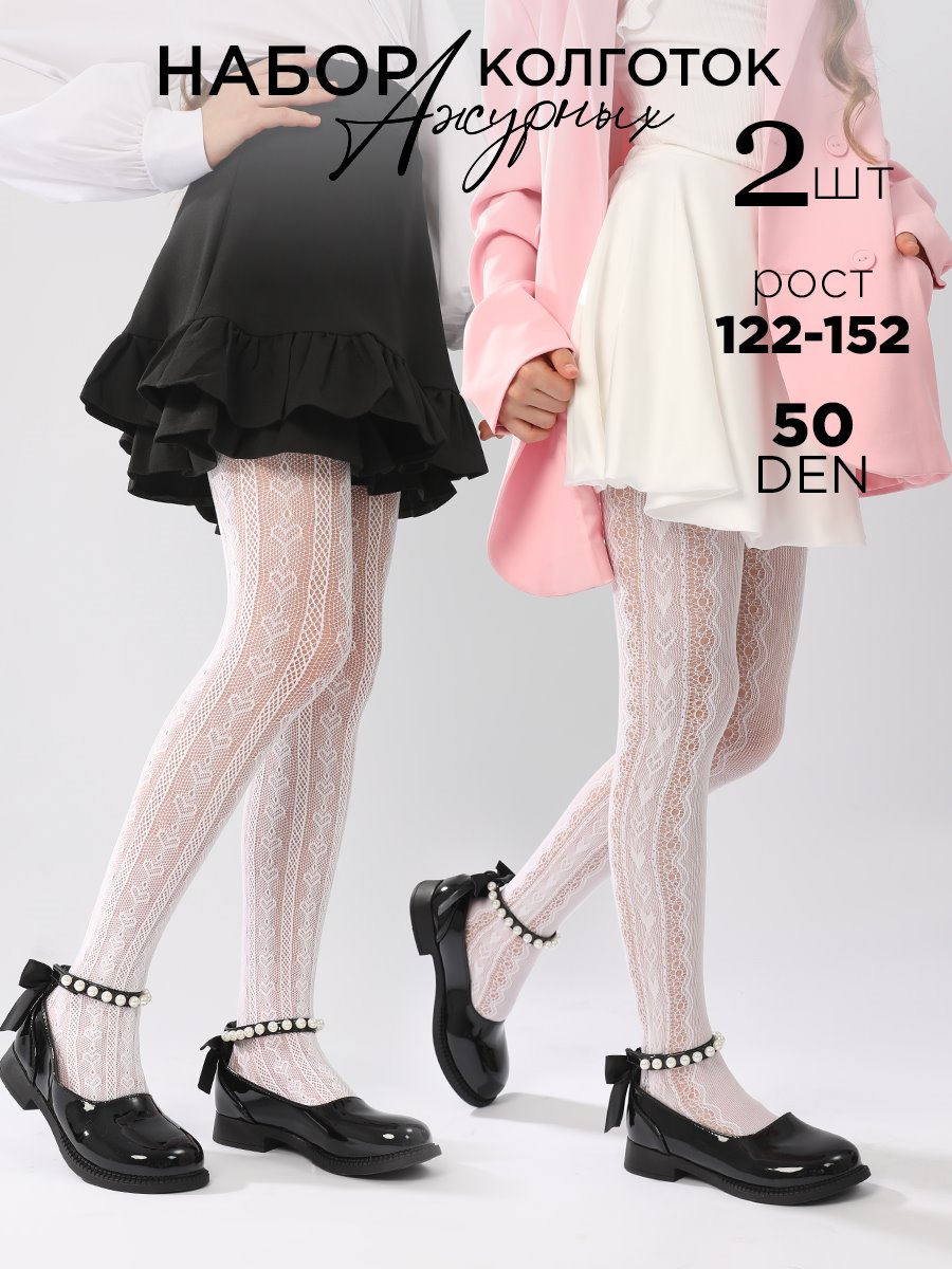 Лёгкие, капроновые колготки для девочки, декорированные ажурным узором. Хорошо тянутся, не деформируются, что обеспечивает комфорт и удобство в носке. Модель прекрасно подойдет как для торжественных мероприятий, так и для повседневного образа. Размер 122-134/M (рост 122-134 см) Размер 140-152/L (рост 140-152 см)