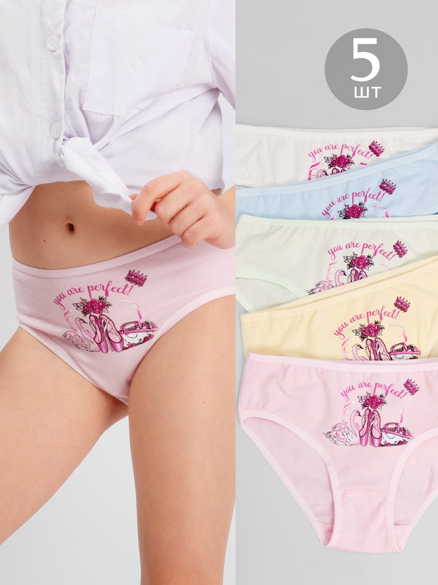 Комплект хлопковых трусиков для девочек. Натуральный материал, не вызывает аллергии и раздражения кожи. Обладает высокими гигроскопичными и воздухопроницаемыми свойствами. Прекрасный выбор на каждый день. Размер 7-8 (рост 122-128 см) Размер 9-10 (рост 134-140 см) Размер 11-12 (рост 146-152 см) Размер 13-14 (рост 158-164 см) Размер 15-16 (рост 164-170 см)
