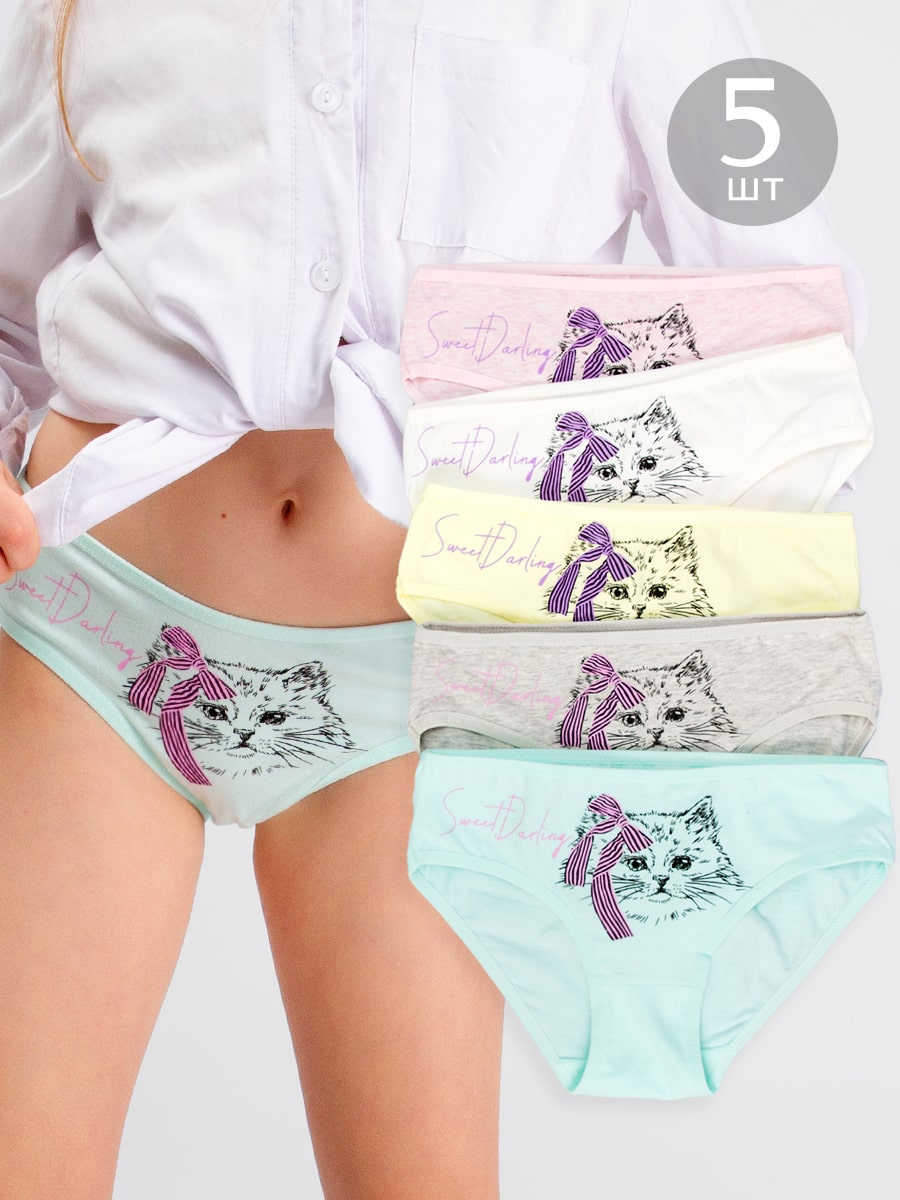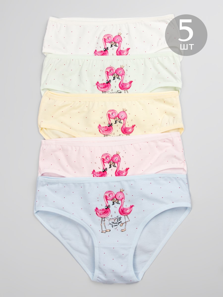 Комплект хлопковых трусиков для девочек. Натуральный материал, не вызывает аллергии и раздражения кожи. Обладает высокими гигроскопичными и воздухопроницаемыми свойствами. Прекрасный выбор на каждый день. Размер 7-8 (рост 122-128 см) ширина изделия по талии 22 см, по бёдрам 24 см, высота изделия 20 см, пройма 16 см. Размер 9-10 (рост 134-140 см) ширина изделия по талии 24 см, по бёдрам 26 см, высота изделия 21 см, пройма 17 см. Размер 11-12 (рост 146-152 см) ширина изделия по талии 27 см, по бёдрам 29 см, высота изделия 22 см, пройма 18 см. Размер 13-14 (рост 158-164 см) ширина изделия по талии 29 см, по бёдрам 31 см, высота изделия 23 см, пройма 19 см.