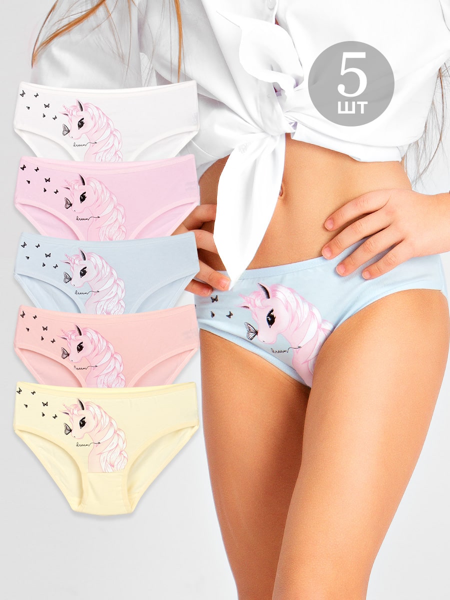 Комплект хлопковых трусиков для девочек. Натуральный материал, не вызывает аллергии и раздражения кожи. Обладает высокими гигроскопичными и воздухопроницаемыми свойствами. Прекрасный выбор на каждый день. Размер 5-6 (рост 110-116 см) ширина изделия по талии 21 см, по бёдрам 22 см, высота изделия 19 см, пройма 15 см. Размер 7-8 (рост 122-128 см) ширина изделия по талии 22 см, по бёдрам 24 см, высота изделия 20 см, пройма 16 см. Размер 9-10 (рост 134-140 см) ширина изделия по талии 24 см, по бёдрам 26 см, высота изделия 21 см, пройма 17 см. Размер 11-12 (рост 146-152 см) ширина изделия по талии 27 см, по бёдрам 29 см, высота изделия 22 см, пройма 18 см.