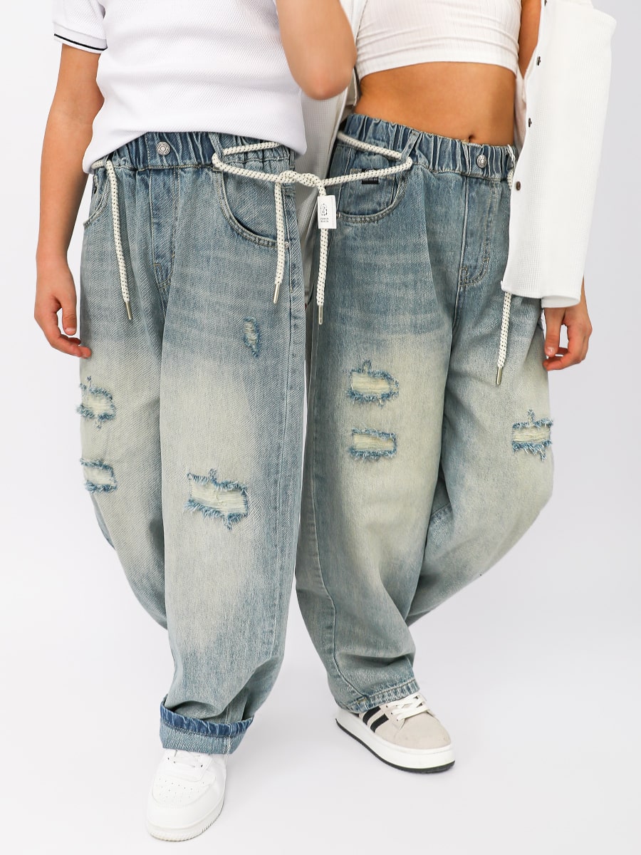 Джинсы детские Rong Rong. Трендовая модель из эластичного денима, на широкой резинке, без молнии и пуговиц. Брючины свободные в районе бедер и зауженные к низу. Размер 104-22 (рост 98-104 см) длина по внешнему шву 66 см, по внутреннему 42 см, ОТ 44 см, ОБ 64 см. Размер 110-23 (рост 104-110 см) длина по внешнему шву 66 см, по внутреннему 42 см, ОТ 46 см, ОБ 66 см. Размер 116-24 (рост 110-116 см) длина по внешнему шву 70 см, по внутреннему 44 см, ОТ 48 см, ОБ 68 см. Размер 122-25 (рост 116-122 см) длина по внешнему шву 72 см, по внутреннему 46 см, ОТ 48 см, ОБ 70 см. Размер 128-26 (рост 122-128 см) длина по внешнему шву 76 см, по внутреннему 48 см, ОТ 50 см, ОБ 72 см.