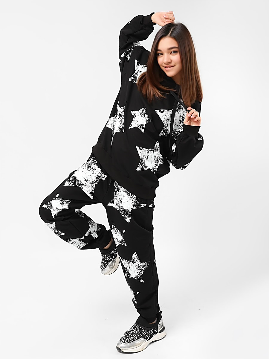 Костюм Соль&Перец. Толстовка оверсайз с капюшоном. Брюки по талии на мягкой, широкой резинке. Плотный и эластичный трикотаж футер 2-х нитка хорошо пропускает воздух, не теряет формы. Размер 140 (рост 134-140 см) длина кофты 56 см, ОГ 104 см, длина рукава от горловины 63 см; длина брюк по боковому шву 86 см, по внутреннему 60 см, ОТ 60 см, ОБ 90 см. Размер 146 (рост 140-146 см) длина кофты 58 см, ОГ 106 см, длина рукава от горловины 64 см; длина брюк по бок. шву 90 см, по внутр. 64 см, ОТ 62 см, ОБ 92 см. Размер 152 (рост 146-152 см) длина кофты 60 см, ОГ 108 см, длина рукава от горловины 65 см; длина брюк по бок.шву 92 см, по внутр. 65 см, ОТ 64 см, ОБ 94 см. Размер 158 (рост 152-158 см) длина кофты 62 см, ОГ 114 см, длина рукава от горловины 66 см; длина брюк по бок.шву 93 см, по внутр. 66 см, ОТ 64 см, ОБ 100 см. Размер 164 (рост 158-164 см) длина кофты 64 см, ОГ 118 см, длина рукава от горловины 68 см; длина брюк по бок.шву 94 см, по внутр. 66 см, ОТ 66 см, ОБ 102 см.