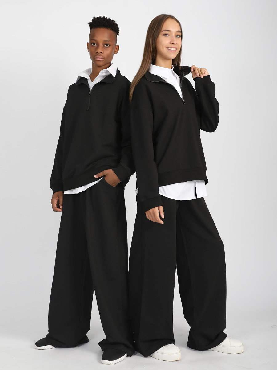 Костюм подростковый школьный Соль&Перец свободного кроя. Размер 134 (рост 134-140 см) длина кофты 54 см, ОГ 92 см, длина рукава (реглан) 56 см; длина брюк по внеш. шву 84 см, по внутр. 60 см, ОТ 52-58 см, ОБ 88 см. Размер 140 (рост 140-146 см) длина кофты 56 см, ОГ 96 см, длина рукава (реглан) 58 см; длина брюк по внеш. шву 90 см, по внутр. 64 см, ОТ 56-62 см, ОБ 92 см. Размер 146 (рост 146-152 см) длина кофты 58 см, ОГ 100 см, длина рукава (реглан) 62 см; длина брюк по внеш. шву 94 см, по внутр. 68 см, ОТ 58-64 см, ОБ 98 см. Размер 152 (рост 152-158 см) длина кофты 62 см, ОГ 106 см, длина рукава (реглан) 66 см; длина брюк по внеш. шву 96 см, по внутр. 70 см, ОТ 60-66 см, ОБ 102 см. Размер 158 (рост 158-164 см) длина кофты 64 см, ОГ 110 см, длина рукава (реглан) 70 см; длина брюк по внеш. шву 102 см, по внутр. 74 см, ОТ 62-68 см, ОБ 108 см. Размер 164 (рост 164-170 см) длина кофты 65 см, ОГ 114 см, длина рукава (реглан) 72 см; длина брюк по внеш. шву 108 см, по внутр. 80 см, ОТ 64-72 см, ОБ 112 см.