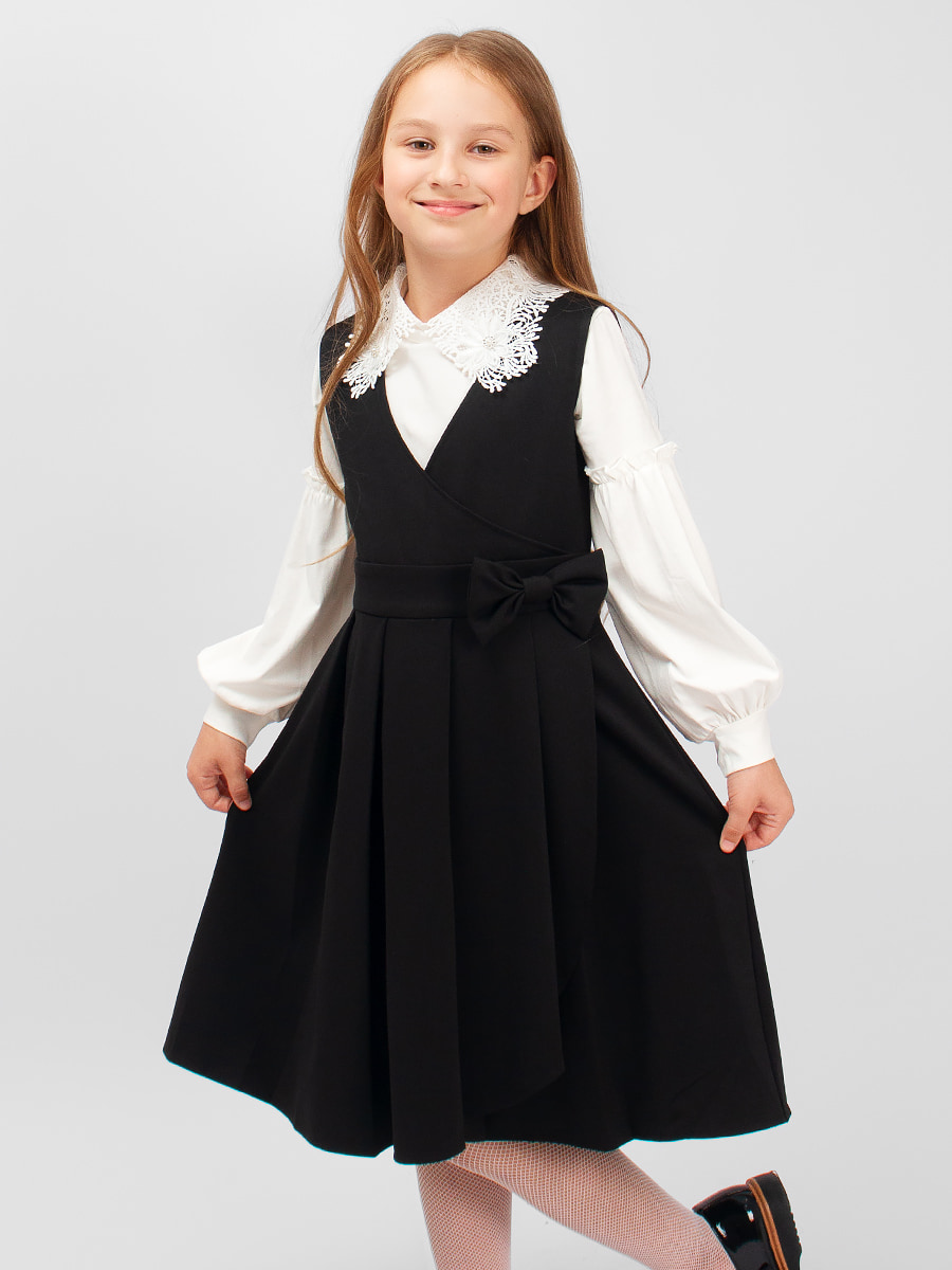 Очаровательный сарафан для девочки Соль&Перец из плотного трикотажа, с подкладом и юбочкой в складку. Сарафан декорирован бантиком из основной ткани. Износоустойчивый материал позволит надолго сохранить форму и привлекательный внешний вид изделия. Идеальный выбор для создания стильного, школьного образа. Размер 128 (рост 122-128 см) длина изделия 78 см, обхват груди 68 см. Размер 134 (рост 128-134 см) длина изделия 80 см, обхват груди 74 см. Размер 140 (рост 134-140 см) длина изделия 86 см, обхват груди 78 см. Размер 146 (рост 140-146 см) длина изделия 88 см, обхват груди 82 см. Размер 152 (рост 146-152 см) длина изделия 92 см, обхват груди 84 см.