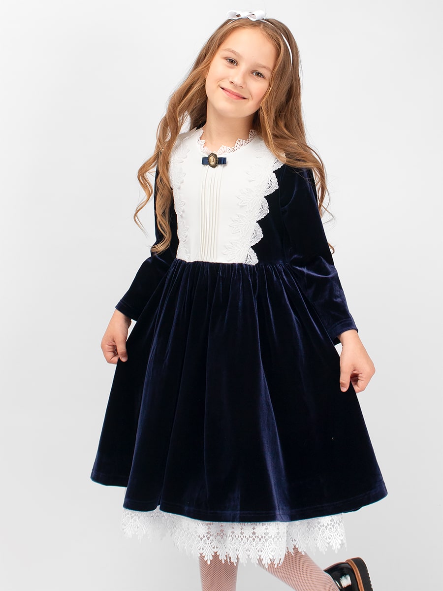 Очаровательное платье для девочки Соль&Перец из бархата, с отрезной кокеткой. Платье декорировано белой кружевной окантовкой и дополнено съёмной брошью. Износоустойчивый материал позволит надолго сохранить форму и привлекательный внешний вид изделия. Идеальный выбор для создания стильного, школьного образа. Платье без подъюбника. Размер 128 (рост 122-128 см) длина изделия 70 см, обхват груди 72 см, длина рукава 38 см. Размер 134 (рост 128-134 см) длина изделия 76 см, обхват груди 74 см, длина рукава 42 см. Размер 140 (рост 134-140 см) длина изделия 80 см, обхват груди 78 см, длина рукава 44 см. Размер 146 (рост 140-146 см) длина изделия 82 см, обхват груди 80 см, длина рукава 46 см. Размер 152 (рост 146-152 см) длина изделия 86 см, обхват груди 86 см, длина рукава 48 см.