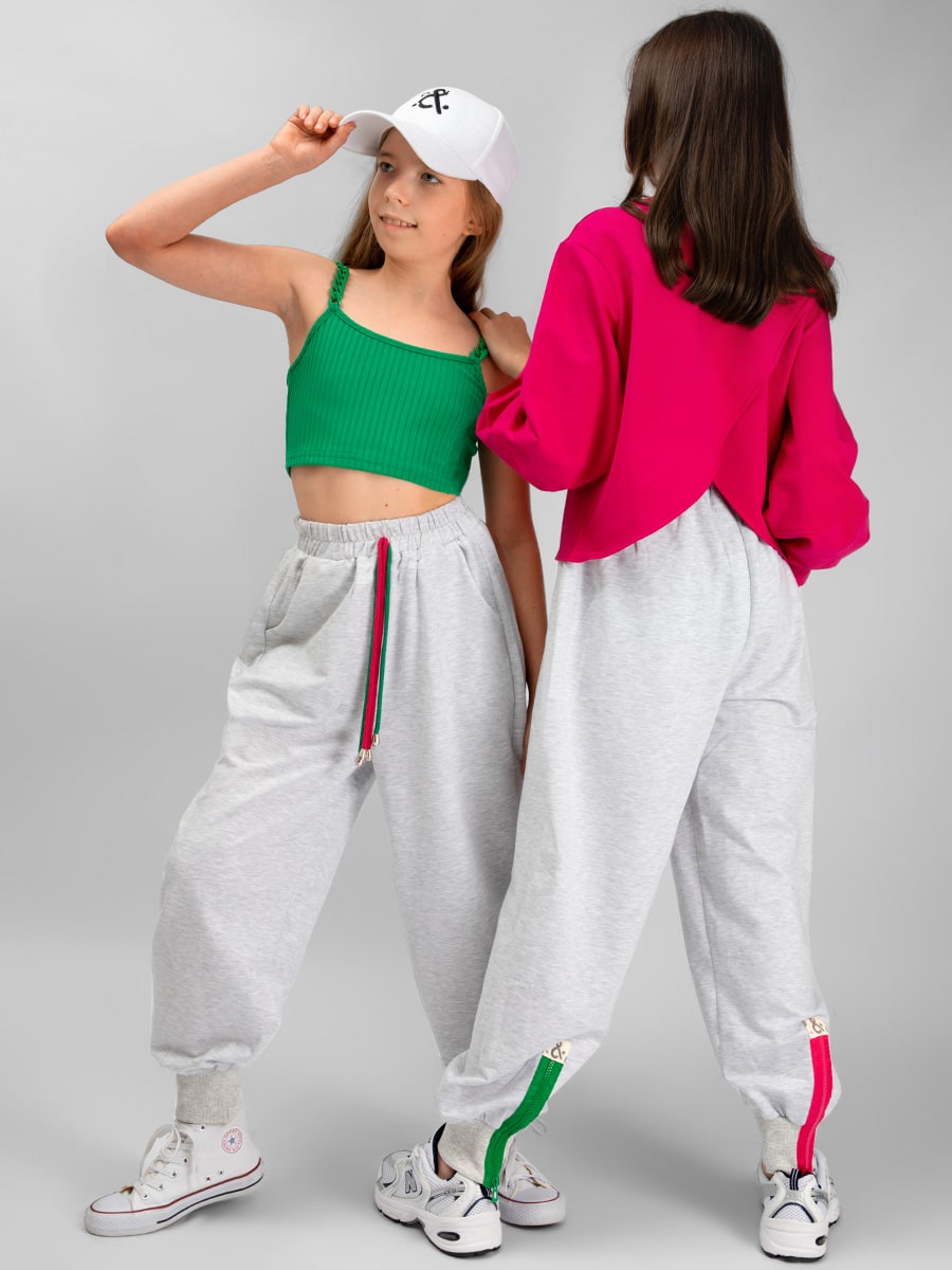 Костюм для девочки Соль&Перец. Джемпер укороченный с ассиметричной линией низа. Брюки по талии на мягкой, широкой резинке, с манжетами. Плотный и эластичный трикотаж футер 2-х нитка хорошо пропускает воздух, не теряет формы. Размер 128 (рост 122-128 см) длина кофты 46 см, ОГ 70 см, длина рукава от горловины 56 см; длина брюк по бок.шву 80 см, по внутр. 54 см, ОТ 60 см, ОБ 76 см. Размер 134 (рост 128-134 см) длина кофты 48 см, ОГ 72 см, длина рукава от горловины 59 см; длина брюк по бок.шву 82 см, по внутр. 56 см, ОТ 62 см, ОБ 78 см. Размер 140 (рост 134-140 см) длина кофты 48 см, ОГ 74 см, длина рукава от горловины 63 см; длина брюк по боковому шву 84 см, по внутреннему 58 см, ОТ 64 см, ОБ 80 см. Размер 146 (рост 140-146 см) длина кофты 50 см, ОГ 76 см, длина рукава от горловины 65 см; длина брюк по бок. шву 88 см, по внутр. 62 см, ОТ 66 см, ОБ 82 см. Размер 152 (рост 146-152 см) длина кофты 50 см, ОГ 78 см, длина рукава от горловины 66 см; длина брюк по бок.шву 90 см, по внутр. 64 см, ОТ 68 см, ОБ 84 см.
