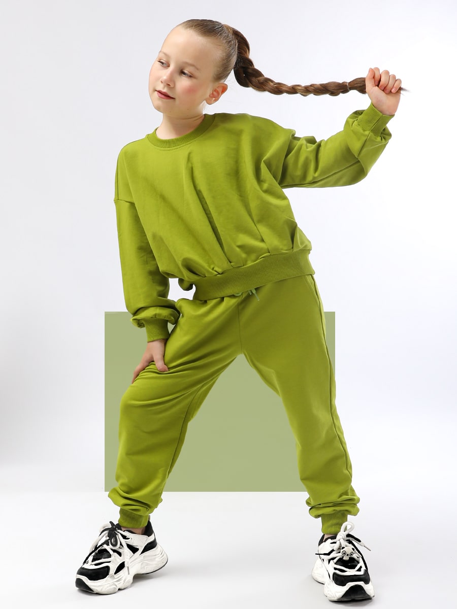 Костюм для девочки Соль&Перец. Джемпер свободного кроя. Брюки по талии на мягкой, широкой резинке. Плотный и эластичный трикотаж футер 2-х нитка хорошо пропускает воздух, не теряет формы. Размер 140 (рост 134-140 см) длина кофты 48 см, ОГ 84 см, длина рукава от горловины 61 см; длина брюк по боковому шву 88 см, по внутреннему 60 см, ОТ 64 см, ОБ 84 см. Размер 146 (рост 140-146 см) длина кофты 50 см, ОГ 86 см, длина рукава от горловины 62 см; длина брюк по боковому шву 90 см, по внутреннему 62 см, ОТ 66 см, ОБ 86 см. Размер 152 (рост 146-152 см) длина кофты 52 см, ОГ 88 см, длина рукава от горловины 63 см; длина брюк по боковому шву 92 см, по внутреннему 64 см, ОТ 68 см, ОБ 88 см. Размер 158 (рост 152-158 см) длина кофты 54 см, ОГ 92 см, длина рукава от горловины 65 см; длина брюк по боковому шву 96 см, по внутреннему 66 см, ОТ 70 см, ОБ 90 см. Размер 164 (рост 158-164 см) длина кофты 56 см, ОГ 94 см, длина рукава от горловины 70 см; длина брюк по боковому шву 98 см, по внутреннему 68 см, ОТ 72 см, ОБ 92 см.