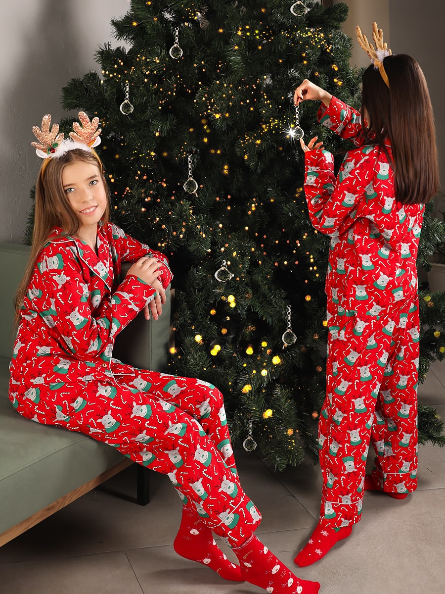 Пижама детская Соль&Перец. Состоит из рубашки и брюк с принтом в новогодней тематике. Пижама выполнена из натурального, гипоаллергенного материала 100% хлопка. Пижама не сковывает движений, комфортная и приятная к телу. Размер 128 (рост 122-128 см) длина рубашки 52 см, ОГ 80 см, длина рукава 46 см, длина брюк 80 см, ОТ 54 см, ОБ 84 см. Размер 140 (рост 134-140 см) длина рубашки 54 см, ОГ 88 см, длина рукава 50 см, длина брюк 86 см, ОТ 60 см, ОБ 90 см. Размер 152 (рост 146-152 см) длина рубашки 60 см, ОГ 96 см, длина рукава 54 см, длина брюк 94 см, ОТ 64 см, ОБ 94 см. Размер 164 (рост 158-164 см) длина рубашки 64 см, ОГ 106 см, длина рукава 58 см, длина брюк 101 см, ОТ 76 см, ОБ 104 см.