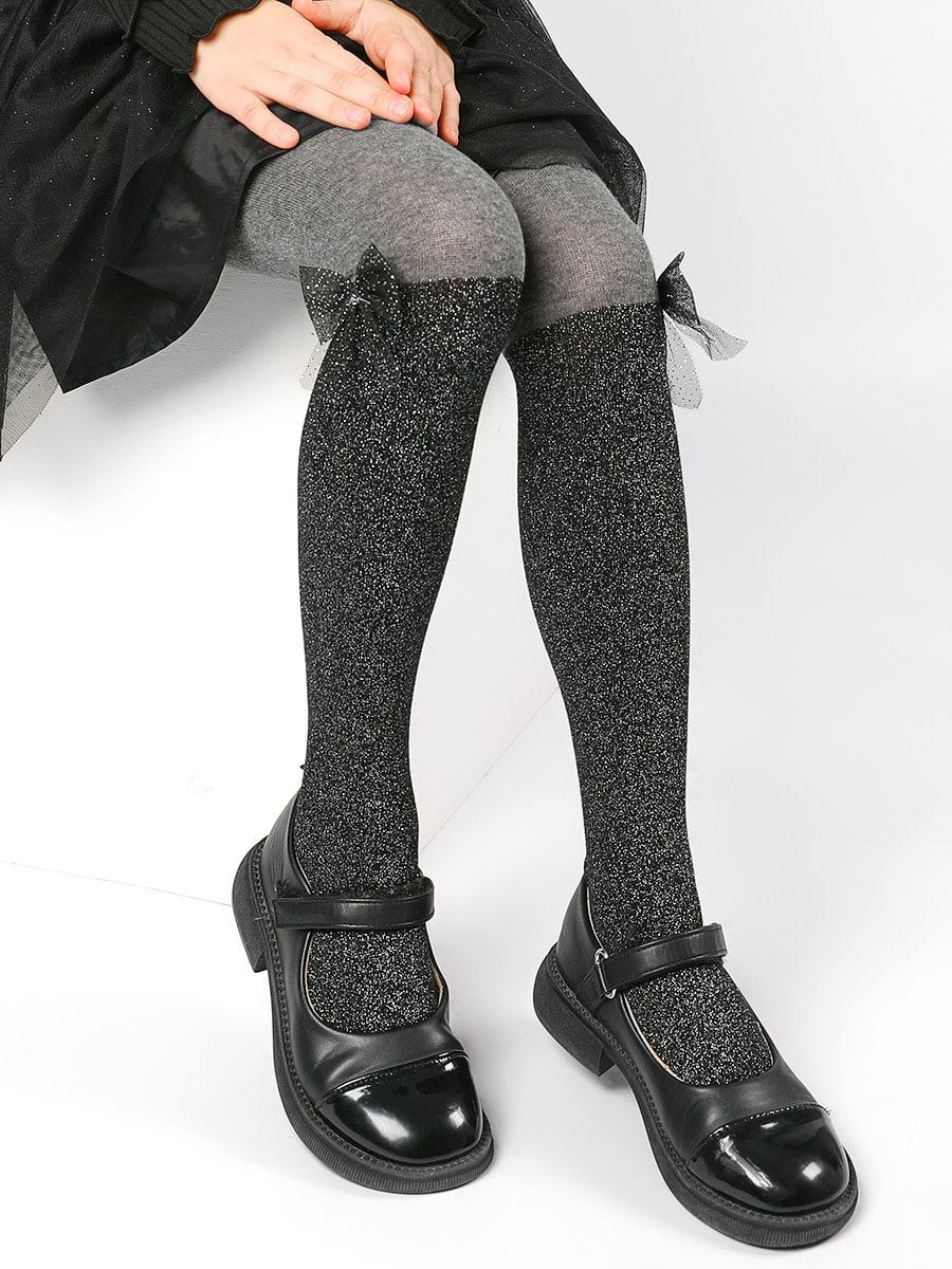 Капроновые гольфы для девочки, декорированные ажурным узором, бантиками из атласной ленты и бусинами. Хорошо тянутся, не деформируются, что обеспечивает комфорт и удобство в носке. Модель прекрасно подойдет как для торжественных мероприятий, так и для повседневного образа. Размер единый (размер обуви 30-38)
