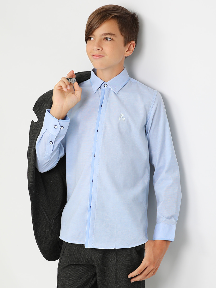 Классическая рубашка для мальчика Соль&Перец прямого силуэта, на кнопках. Рубашка выполнена из натурального хлопка для лёгкости и комфорта в повседневной носке. Рубашка идеально сочетается с брюками любого фасона и подойдет как для школы, так и для торжественного мероприятия. На груди вышивка логотип бренда. Размер 140 (рост 140-146 см) длина изделия 60 см, обхват груди 86 см, длина рукава 52 см. Размер 152 (рост 152-158 см) длина изделия 64 см, обхват груди 92 см, длина рукава 56 см. Размер 164 (рост 158-164 см) длина изделия 68 см, обхват груди 100 см, длина рукава 60 см. Размер 176 (рост 170-176 см) длина изделия 70 см, обхват груди 108 см, длина рукава 62 см.