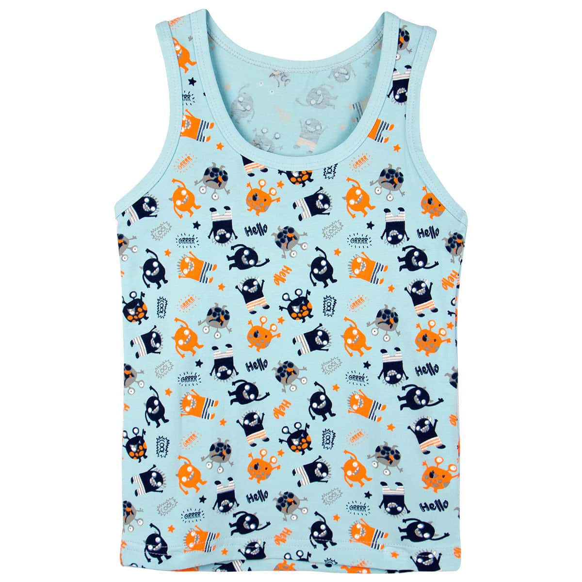 Бельевая майка, с оригинальным принтом, для мальчика. Изделие выполнено из мягкой, гипоаллергенной, ткани кулирка. Прекрасный выбор на каждый день, для дома или школы. Размер 3-4 (рост 98-104 см) длина изделия 42 см, полуобхват груди 26 см. Размер 5-6 (рост 110-116 см) длина изделия 43 см, полуобхват груди 28 см. Размер 7-8 (рост 122-128 см) длина изделия 45 см, полуобхват груди 31 см. Размер 9-10 (рост 134-140 см) длина изделия 48 см, полуобхват груди 34 см. Размер 11-12 (рост 146-152 см) длина изделия 50 см, полуобхват груди 36 см.