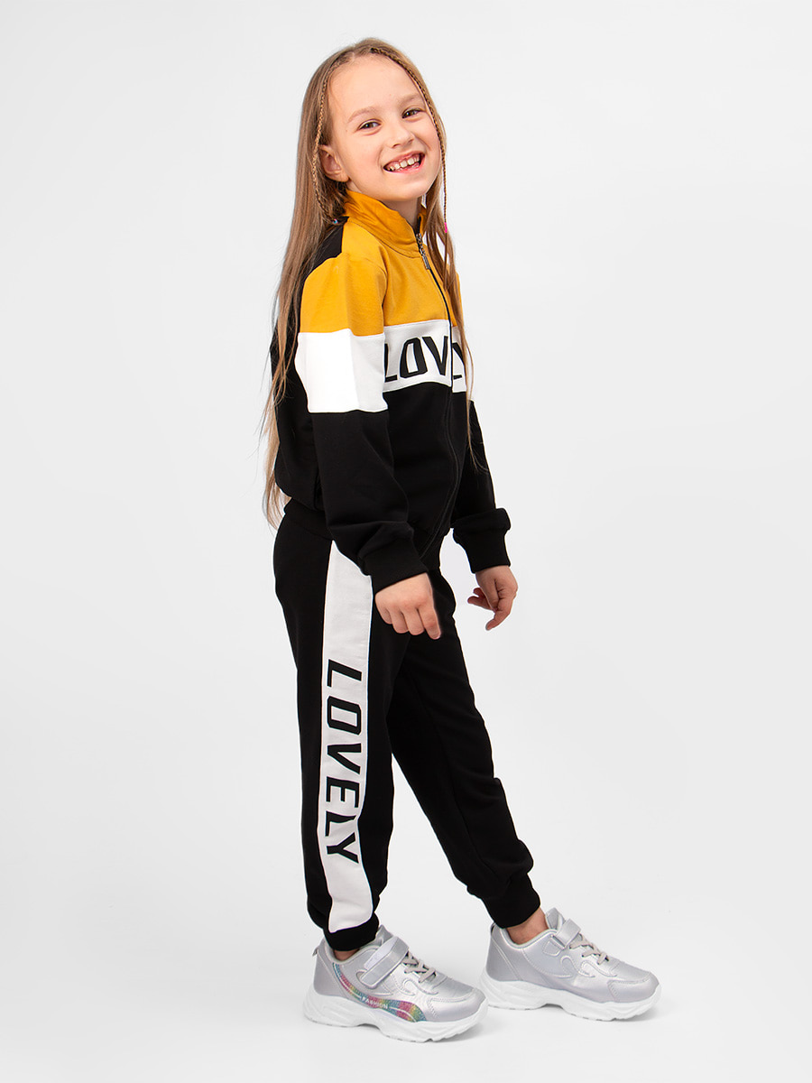 Кофта на молнии, с принтом, воротник стойка-удлиненный. Рукава и низ изделия на манжете. Брюки с вставками по бокам, по низу брючин эластичные манжеты. Мягкий трикотаж футер хорошо пропускает воздух, обладает гипоаллергенными свойствами, не теряет формы. Размер 98(рост 98см) длина кофты 39см, обхват груди 72см, длина рукава 36см, длина брюк по внешнему шву 56см, по внутреннему 36 см, обхват талии 48см. Размер 104(рост 104см) длина кофты 42см, обхват груди 74см, длина рукава 38см, длина брюк по внешнему шву 59см, по внутреннему 40 см, обхват талии 50см. Размер 110(рост 110см) длина кофты 44см, обхват груди 76см, длина рукава 41см, длина брюк по внешнему шву 62см, по внутреннему 41 см, обхват талии 52см. Размер 116(рост 116см) длина кофты 46см, обхват груди 78см, длина рукава 43см, длина брюк по внешнему шву 66см, по внутреннему 44 см, обхват талии 54см. Размер 122(рост 122см) длина кофты 48см, обхват груди 80см, длина рукава 46см, длина брюк по внешнему шву 67см, по внутреннему 45 см, обхват талии 56см.