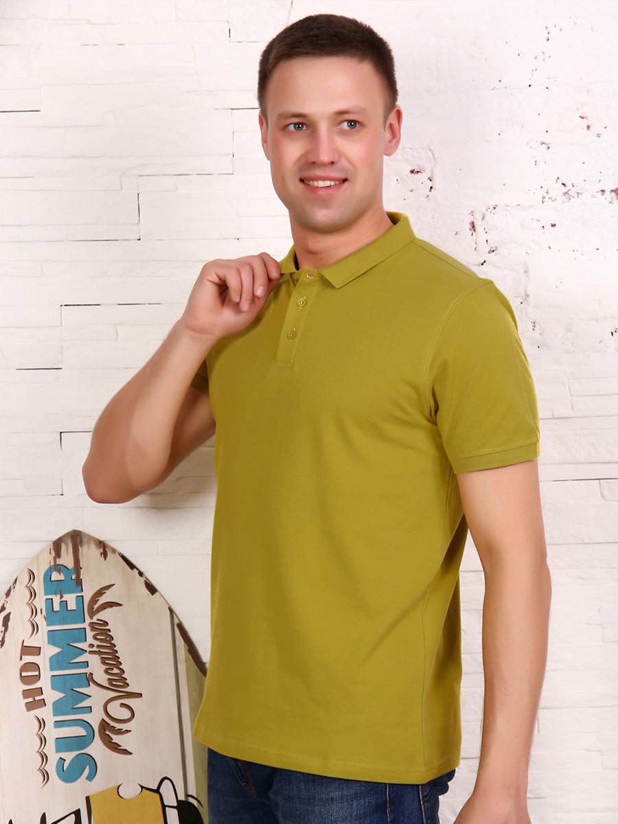 Мужская футболка-поло с коротким рукавом, слегка приталенного силуэта, трикотажный воротник на пуговицах. Размер 48: длина изделия 70 см, обхват груди 106 см. Размер 50: длина изделия 72 см, обхват груди 110 см.