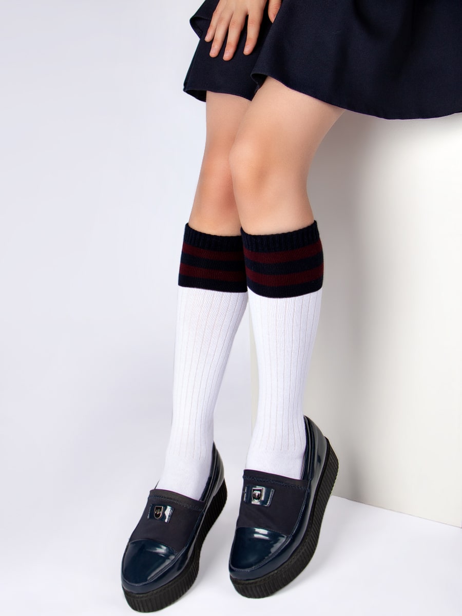 Колготки для девочки Соль&Перец. Колготки выполнены из высококачественной пряжи. Легкость при надевании и комфортное облегание по ножке обеспечивает эластан с обкрученной нитью. Изделие надолго сохраняет свой первоначальный вид. Использование длинноворсового хлопка придаёт колготкам исключительную мягкость и уют. Цвет полосы, на белых колготках, тёмно-синий с красным. Размер 110-116/5-6 (рост 110-116 см) Размер 122-128/7-8 (рост 122-128 см) Размер 134-140/9-10 (рост 134-140 см) Размер 146-152/11-12 (рост 146-152 см) Размер 152-158/13-15 (рост 152-158 см)