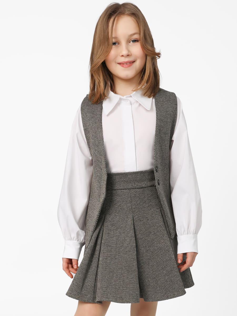 Классический, однобортный жилет для девочки Соль&Перец. Жилет с подкладом, выполнен из износостойкой костюмной ткани твид которая долго сохраняет форму и привлекательный внешний вид. Жилет прекрасно сочетается с юбками и брюками. Подойдет для посещения школы, официального или праздничного мероприятия. Размер 140 (рост 134-140 см) длина изделия 46 см, обхват груди 68 см. Размер 146 (рост 140-146 см) длина изделия 48 см, обхват груди 70 см. Размер 152 (рост 146-152 см) длина изделия 50 см, обхват груди 72 см. Размер 158 (рост 152-158 см) длина изделия 52 см, обхват груди 74 см. Размер 164 (рост 158-164 см) длина изделия 54 см, обхват груди 76 см.