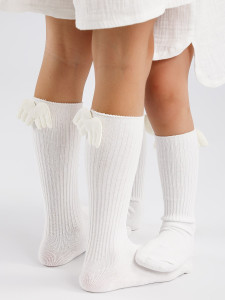 Прелестные гольфы в рубчик, с декором в форме ангельских крыльев. Модель выполнена из натурального, гипоаллергенного материала. Мягкая резинка не доставит дискомфорта. Идеально дополнят праздничный или повседневный образ.