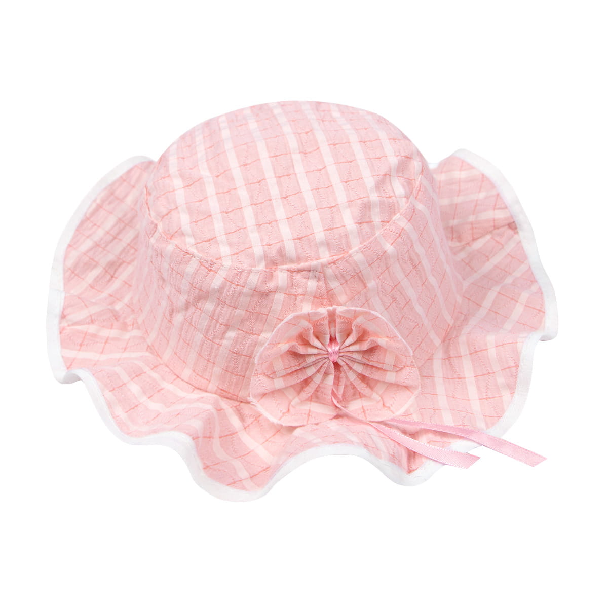 Панама на резинке, с короткополыми полями, декорированная аксессуаром-цветком. Прекрасный выбор для защиты нежной детской кожи от палящих солнечных лучей. Размер 46-47 (9 мес-1 год)