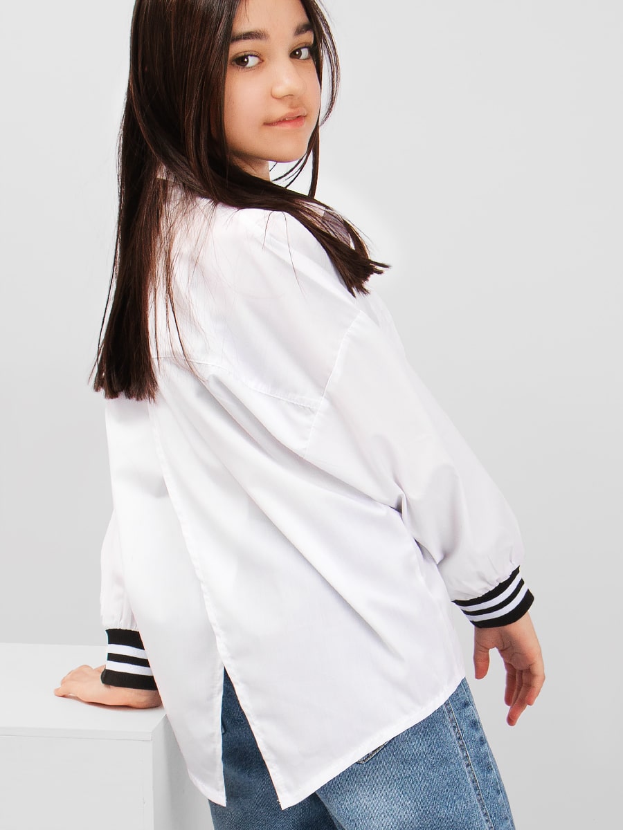Блузка Соль&Перец модель оверсайз для девочек и подростков на пуговицах. Удлиненная спинка, плечо приспущено, рукава заканчиваются трикотажной манжетой. Блузка прекрасно сочетается как с брюками, так и с юбкой, подчеркнет индивидуальный стиль девочки, и разнообразит ее повседневный школьный образ. Размер 128-34 (рост 128-134 см) длина изделия 49 см, ОГ 86 см, длина рукава 36 см. Размер 134-36 (рост 134-140 см) длина изделия 51 см, ОГ 90 см, длина рукава 38 см. Размер 140-38 (рост 140-146 см) длина изделия 53 см, ОГ 94 см, длина рукава 39 см. Размер 146-40 (рост 146-152 см) длина изделия 55 см, ОГ 98 см, длина рукава 41 см. Размер 152-42 (рост 152-158 см) длина изделия 57 см, ОГ 104 см, длина рукава 42 см. Размер 158-44 (рост 158-164 см) длина изделия 59 см, ОГ 106 см, длина рукава 45 см. Размер 164-46 (рост 164-170 см) длина изделия 60 см, ОГ 110 см, длина рукава 46 см. Размер 170-48 (рост 170-176 см) длина изделия 61 см, ОГ 114 см, длина рукава 47 см.