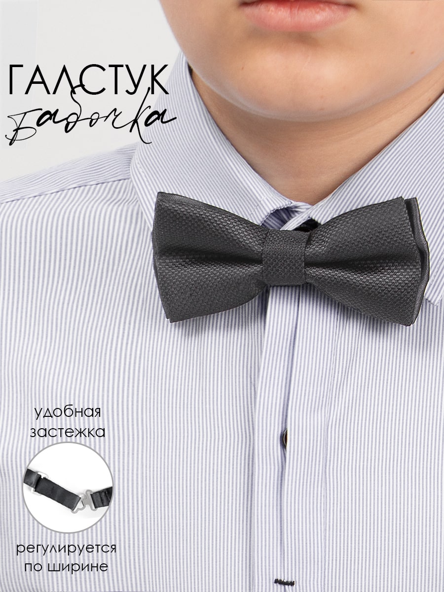 Классическая галстук-бабочка для мальчика Соль&Перец с атласным регулируемым ремешком и удобной металлической застежкой. Галстук-бабочка двухслойная, отлично держит форму. Изготовлена из качественной костюмной ткани. Идеально подойдет для школы или торжественного мероприятия. Размер 10 см (длина бабочки 10 см)