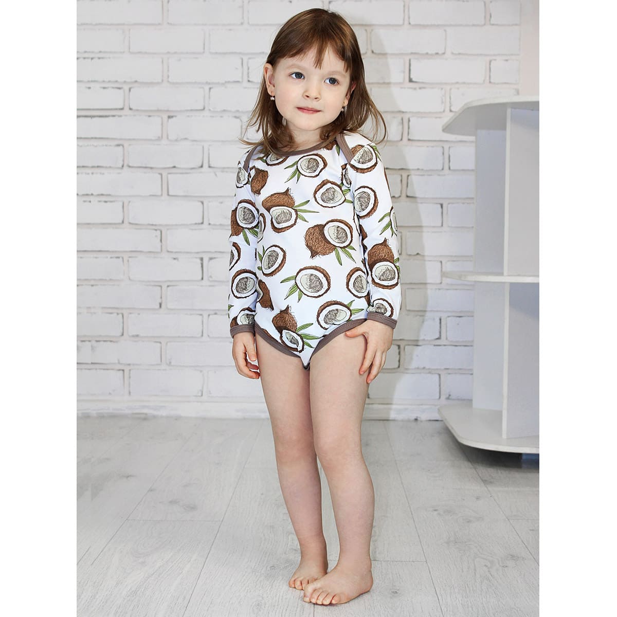 Боди с кокосовым принтом, выполненное из гипоаллергенного трикотажа - интерлок. Вырез-лодочка, на плечах и между ножек удобные застежки-кнопки. Комфортный и безопасный выбор одежды для вашего ребенка. Размер 80 (рост 74-80 см) длина изделия 43 см, полуобхват груди 24 см, длина рукава 27 см. Размер 86 (рост 80-86 см) длина изделия 45 см, полуобхват груди 26 см, длина рукава 30 см. Размер 92 (рост 86-92 см) длина изделия 48 см, полуобхват груди 27 см, длина рукава 32 см.