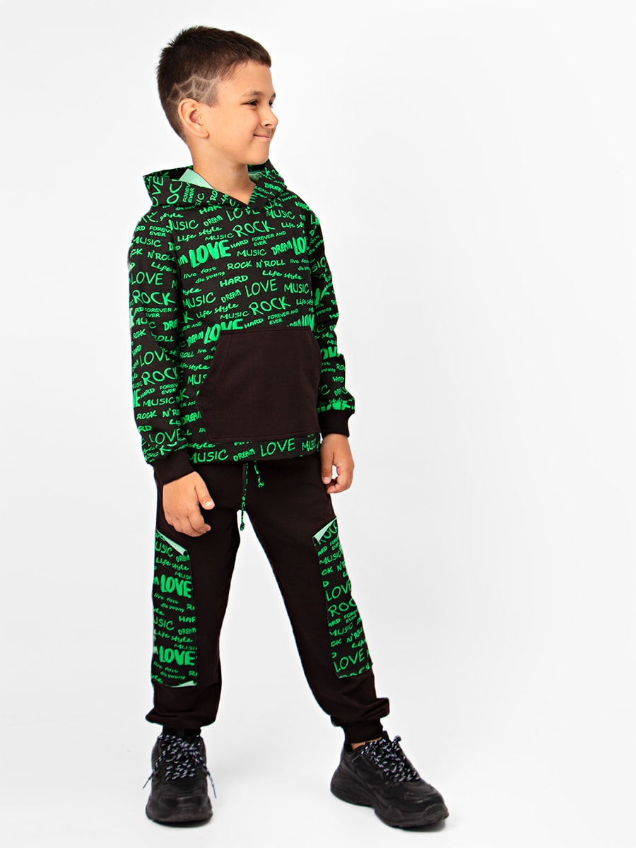 Кофта с капюшоном свободного силуэта. Брюки с мягкой резинкой по талии и манжетами по низу брючин. Плотный и эластичный трикотаж футер-петля хорошо пропускает воздух, не теряет формы, способен удерживать тепло. Отличный вариант для дома или прогулки в холодное время года. Размер 92 (рост 92 см) длина кофты 34 см, обхват груди 64 см, длина рукава 32 см, длина брюк по боковому шву 50 см, по внутреннему 30 см, обхват талии 48 см. Размер 104 (рост 104 см) длина кофты 38 см, обхват груди 68 см, длина рукава 34 см, длина брюк по боковому шву 56 см, по внутреннему 36 см, обхват талии 50 см. Размер 110 (рост 110 см) длина кофты 40 см, обхват груди 72 см, длина рукава 38 см, длина брюк по боковому шву 62 см, по внутреннему 44 см, обхват талии 54 см.
