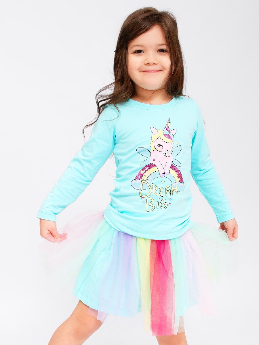 Летний костюм для девочки. Модель состоит из футболки с длинным рукавом и двухслойной юбочки, из основной ткани и легкого, воздушного фатина. Натуральный материал-кулирка отлично пропускает воздух и впитывает влагу. Нарядный костюм для маленьких и стильных принцесс. Размер 92 (рост 86-92 см) длина футболки 34 см, длина рукава 30 см, обхват груди 52 см, длина юбки 22 см, обхват талии 42 см. Размер 98 (рост 92-98 см) длина футболки 36 см, длина рукава 32 см, обхват груди 54 см, длина юбки 24 см, обхват талии 44 см. Размер 104 (рост 98-104 см) длина футболки 38 см, длина рукава 34 см, обхват груди 56 см, длина юбки 26 см, обхват талии 46 см. Размер 110 (рост 104-110 см) длина футболки 40 см, длина рукава 36 см, обхват груди 58 см, длина юбки 28 см, обхват талии 48 см.