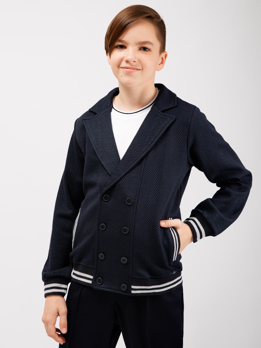 Пиджак для мальчика Соль&Перец. Рукава и низ изделия с широкими, эластичными манжетами. Модель идеально сочетается с брюками любого фасона и подойдет как для школы, так и для торжественного мероприятия. Размер 128 (рост 122-128 см) длина изделия 51 см, обхват груди 78 см, длина рукава 48 см. Размер 134 (рост 128-134 см) длина изделия 52 см, обхват груди 80 см, длина рукава 51 см. Размер 140 (рост 134-140 см) длина изделия 54 см, обхват груди 82 см, длина рукава 52 см. Размер 146 (рост 140-146 см) длина изделия 56 см, обхват груди 84 см, длина рукава 54 см. Размер 152 (рост 146-152 см) длина изделия 58 см, обхват груди 88 см, длина рукава 56 см. Размер 158 (рост 152-158 см) длина изделия 60 см, обхват груди 90 см, длина рукава 58 см. Размер 164 (рост 158-164 см) длина изделия 62 см, обхват груди 92 см, длина рукава 60 см. Размер 170 (рост 164-170 см) длина изделия 64 см, обхват груди 96 см, длина рукава 62 см.