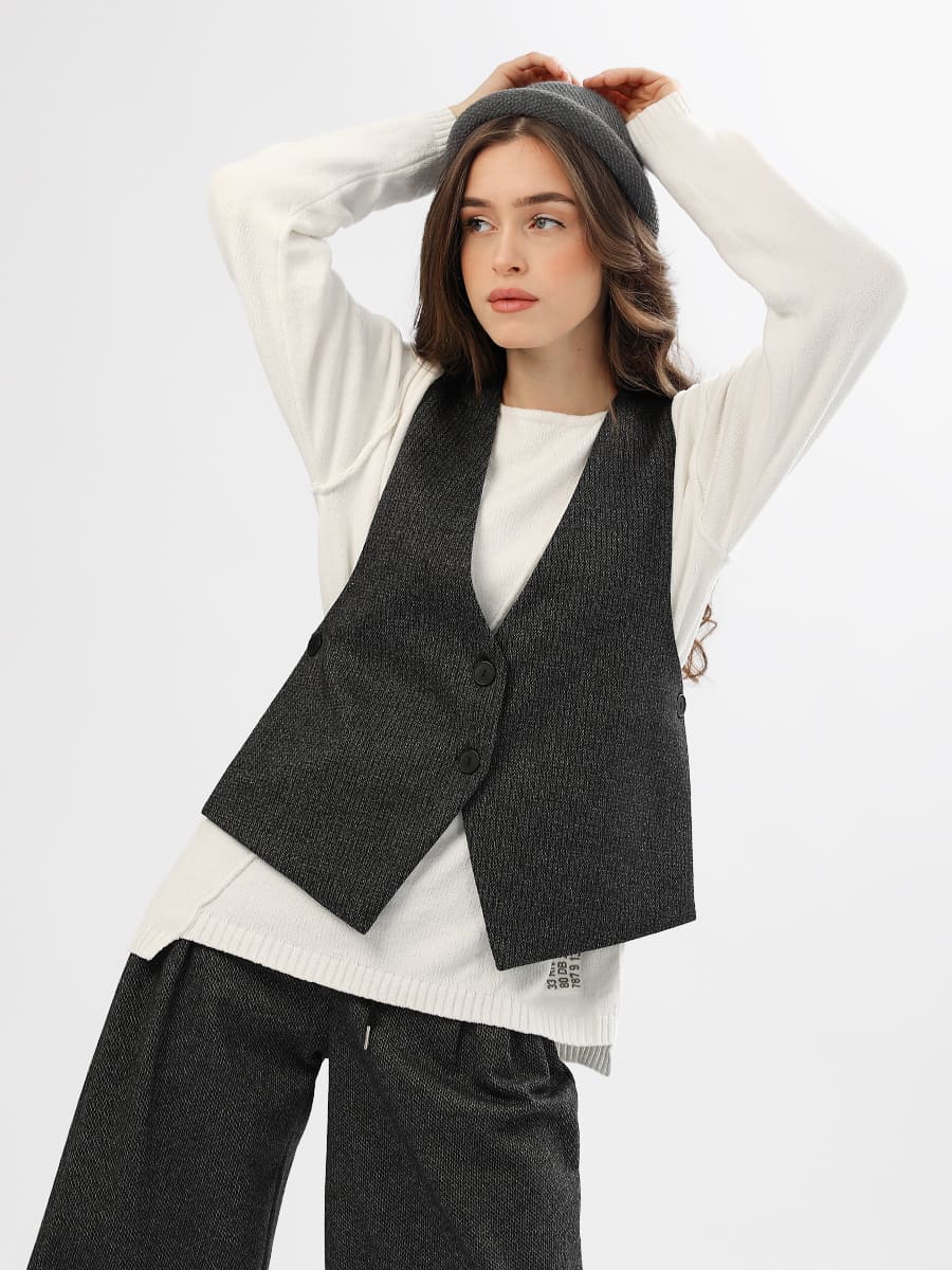 Элегантный женский жилет Соль&Перец, выполнен в традиционном однобортном стиле, из костюмной ткани твид, которая отличается особой износостойкостью и способностью сохранять первоначальную форму даже после длительного использования. Внутренний подклад из атласа обеспечивает дополнительный комфорт при носке и защищает основную ткань от износа. Универсальность модели позволяет сочетать жилет как с классическими брюками для создания делового образа, так и с юбками для более торжественных случаев. Благодаря качественным материалам и продуманному крою, жилет станет незаменимой частью гардероба. Размер 42 длина изделия 56 см, обхват груди 82-86 см. Размер 44 длина изделия 57 см, обхват груди 86-90 см. Размер 46 длина изделия 58 см, обхват груди 90-94 см. Размер 48 длина изделия 60 см, обхват груди 94-98 см. Размер 50 длина изделия 62 см, обхват груди 98-102 см. Размер 52 длина изделия 64 см, обхват груди 102-106 см.