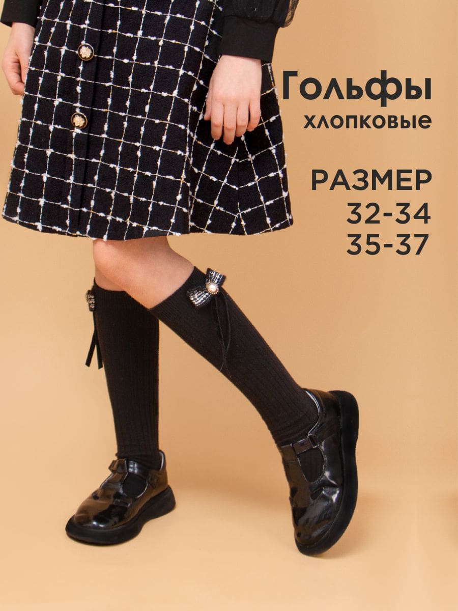 Детские гольфы, с декором в форме бантика на резинке. Модель выполнена из натурального, гипоаллергенного материала. Мягкая резинка не доставит дискомфорта. Идеально дополнят праздничный или повседневный образ. Размер 5-8 (соответствует возрасту 5-8 лет) размер обуви 32-34 Размер 9-12 (соответствует возрасту 9-12 лет) размер обуви 35-37